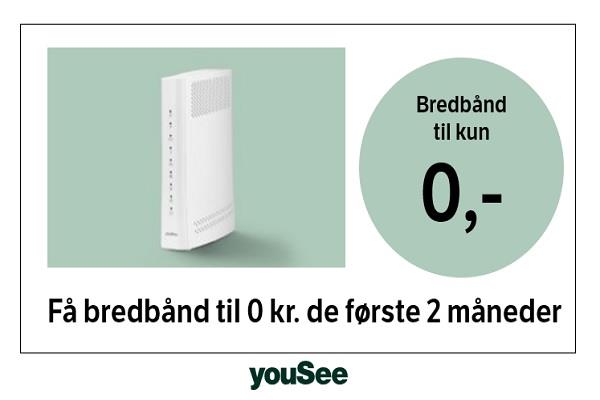 Med YouSee Bredbånd får du fuld fart på internettet Lige nu kan du få de første to måneder til 0 kr.  Du får også oprettelse og forsende...
